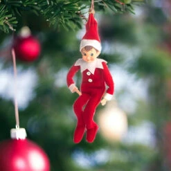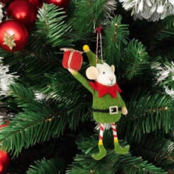 Felt Elf Mouse In Red Suit Holding Christmas Lights Ornament