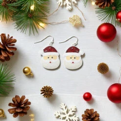 Enamel Santa Face Dangle Earrings By Periwinkle