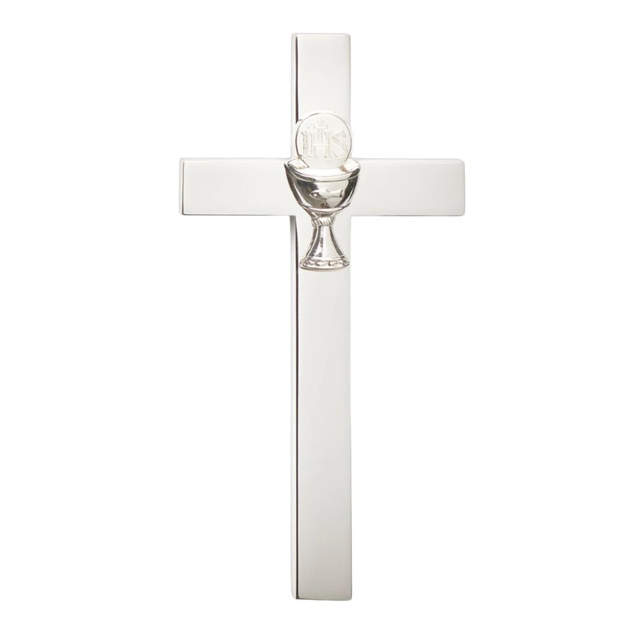 Celebrate a special milestone with this 1st Communion Cross. Crafted with a sleek, polished finish, this elegant cross features a chalice and host emblem, symbolizing the sacred sacrament.