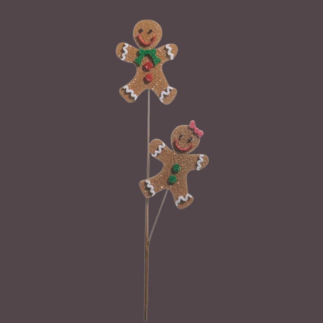 Add a sweet touch to your holiday décor with this adorable 25.5 Inch Gingerbread Spray! Featuring two smiling gingerbread figures decorated with icing details and festive buttons, this whimsical spray is perfect for Christmas trees, wreaths, and centerpieces.