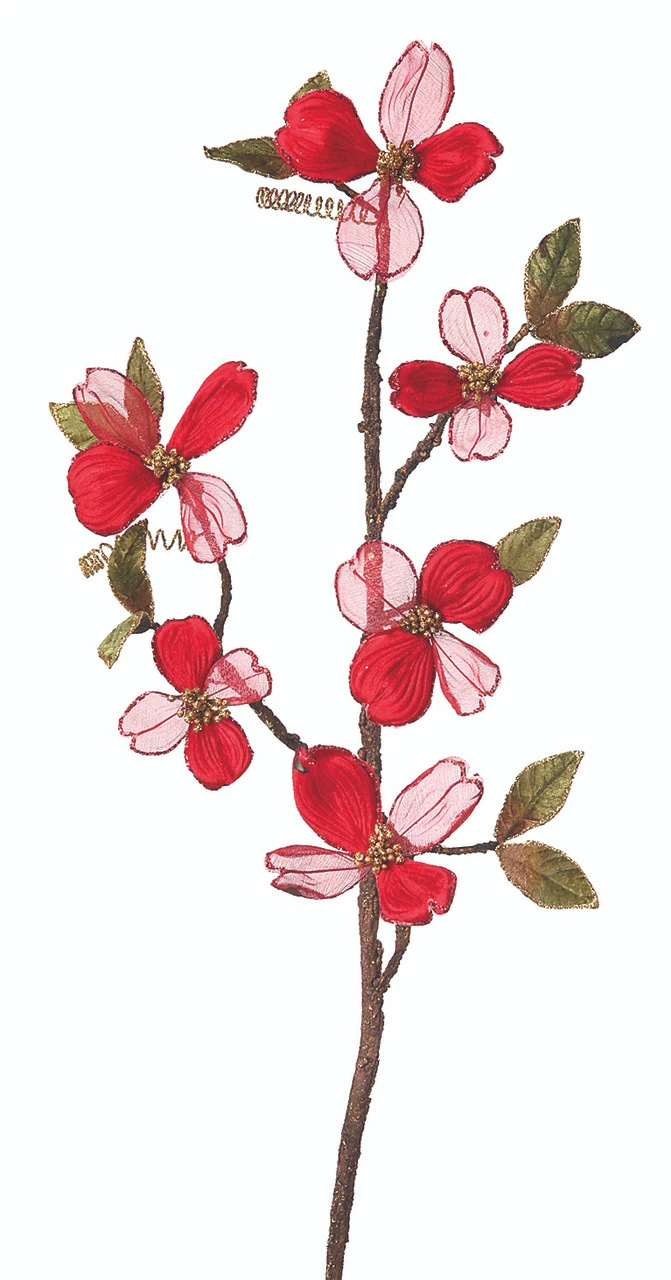 - 33″ Red Velvet Sheer Dogwood SprayÂ