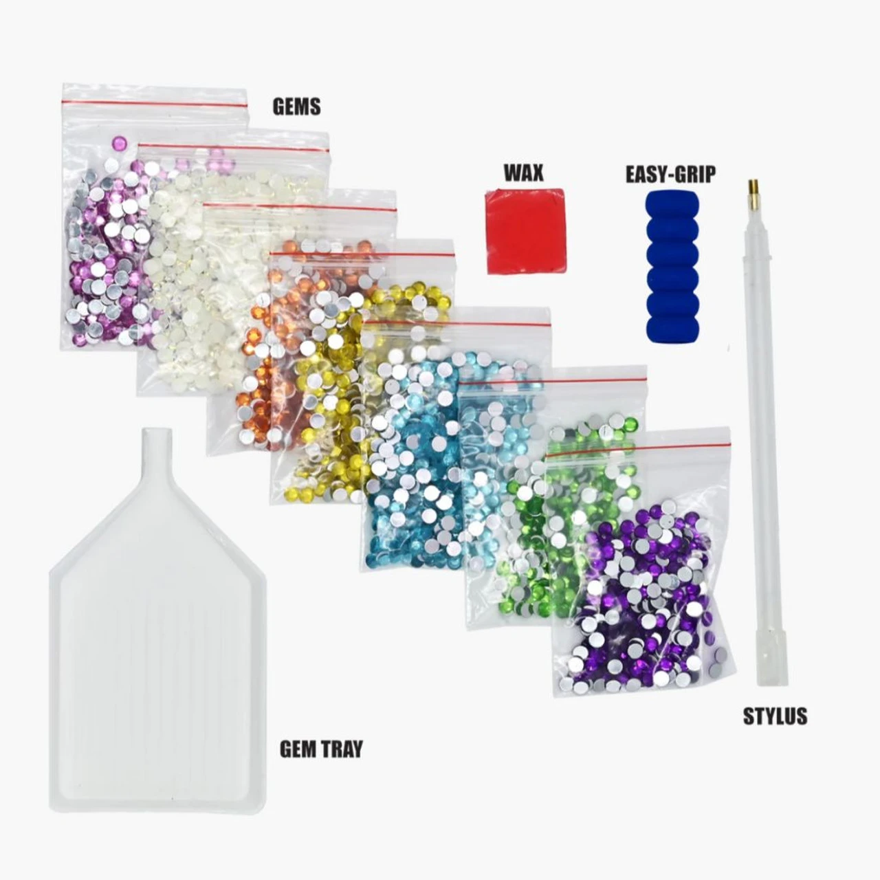 - Material: Kit includes 24 fun stickers to decorate, 2 styluses, 2 pads of wax, and trays to hold your gems.