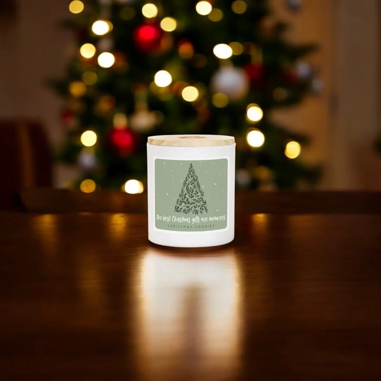 Celebrate the holidays with the Christmas Gifts Tree Candle! This charming candle features a festive green design, a wooden lid, and a delightful Christmas cookie scent that fills your home with warmth.