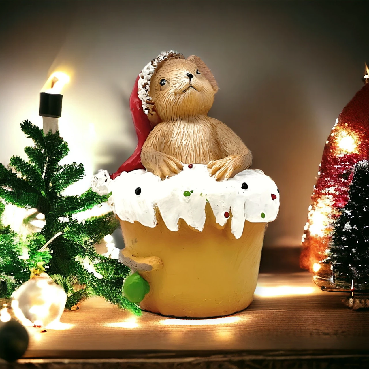 Sprinkle your space with the whimsy of our Christmas Mouse Cupcake Figurine! Perched atop a delectable cupcake, this delightful mouse, snug in a Santa hat, evokes the spirit of the holidays.