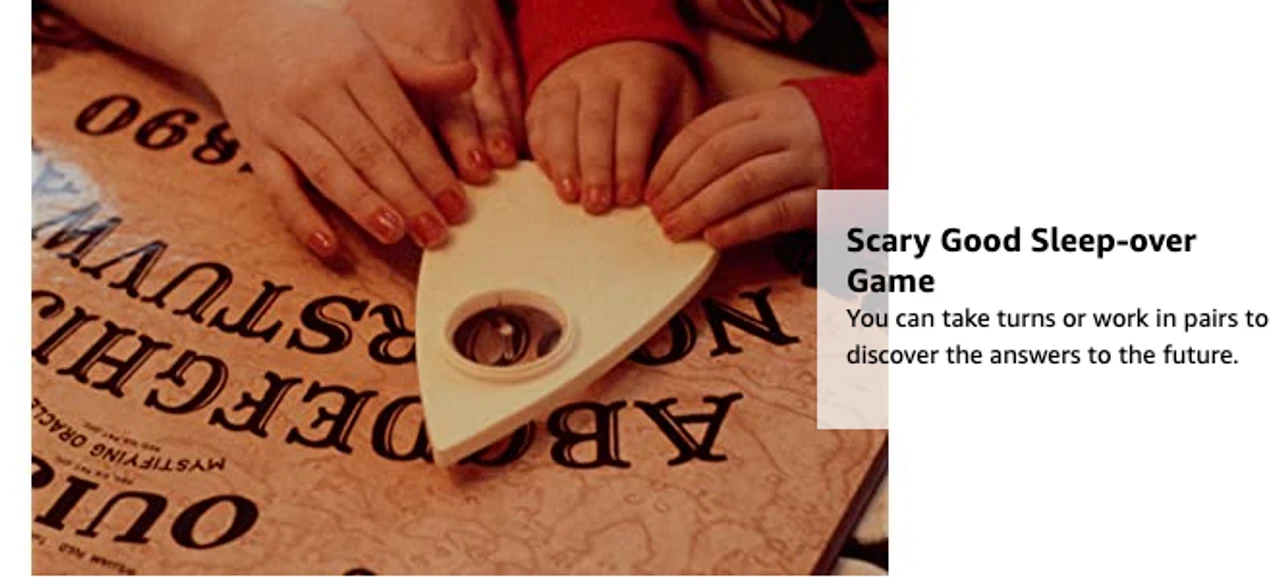 - CONTENTS: Sturdy wood Ouija Board featuring original graphics and plastic message indicator.