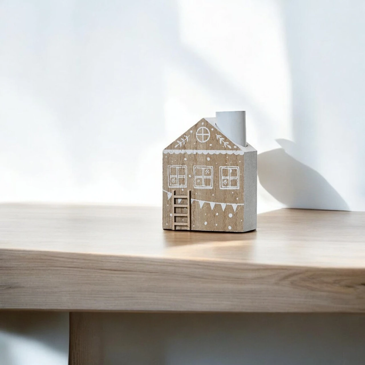 Bring a warm, rustic charm to your home with the Cozy Home Tea Light Candle Holder. Crafted from firwood, this charming holder features a cozy house design with intricate details, perfect for adding a festive touch to your decor. Simply insert a tea light candle into the chimney to create a soft, ambient glow. Measuring 3.5 inches tall, 2.7 inches wide, and 1 inch deep, it’s an ideal addition to mantels, shelves, or tabletops.