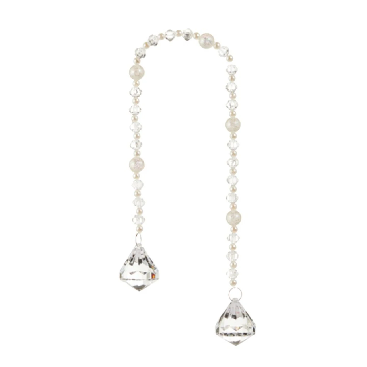 Add elegance to your holiday décor with this Crystal Drop Beaded Garland! Featuring shimmering pearl and crystal beads with dazzling faceted drops at each end, this garland catches the light beautifully.