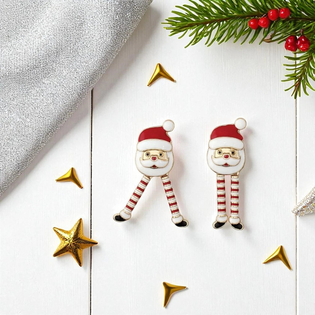 Step into the season with these Dancing Santa Legs Earrings by Periwinkle! Featuring Santa’s cheerful face and long, striped swinging legs, these playful enamel dangles bring movement and holiday fun to every outfit.