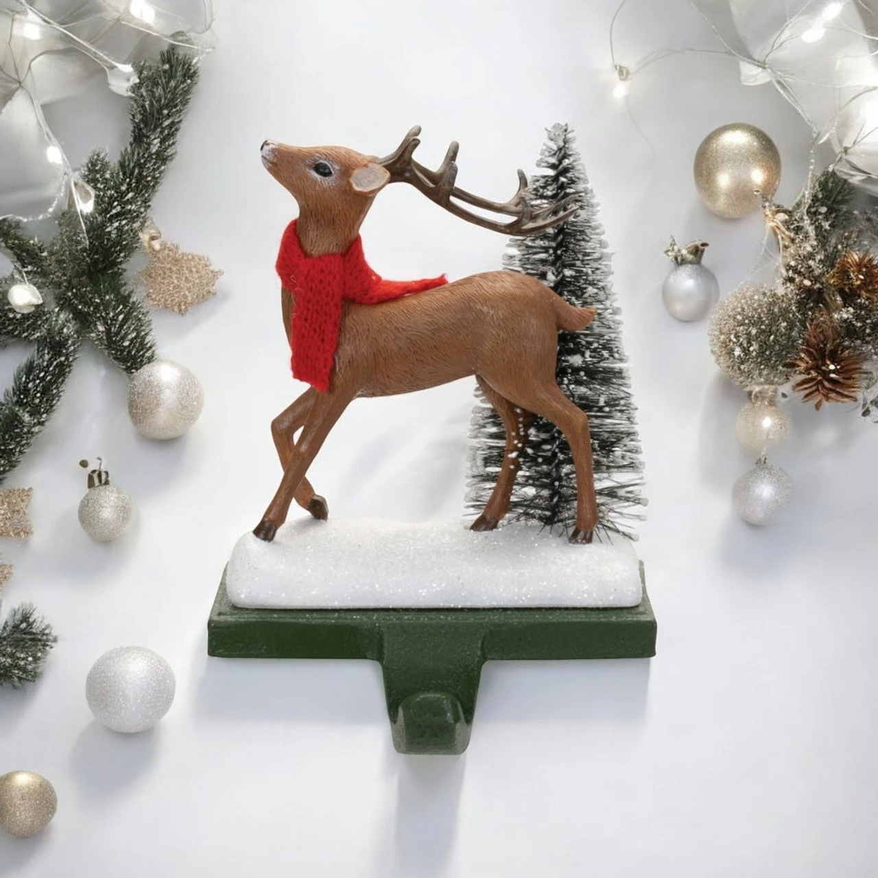 The sturdy base securely holds your stockings, blending functionality with holiday decor. Perfect for adding seasonal warmth and charm, this deer stocking holder will be the highlight of your Christmas decorations.