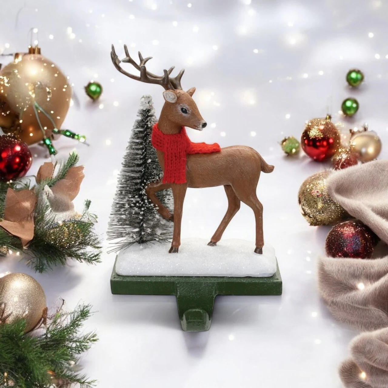 The sturdy base is perfect for holding your Christmas stockings with festive flair. This delightful deer not only adds holiday cheer but also provides practical functionality, making it the perfect addition to your seasonal decor.