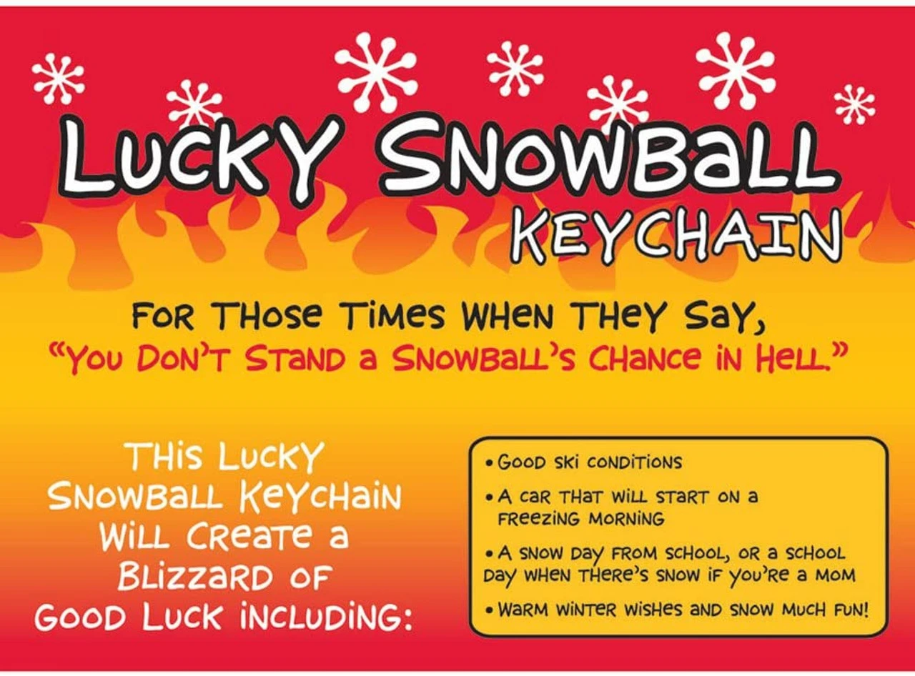 Lucky snowball keychain provides a blizzard of good fortune. Faux fur key ring in decorative packaging makes a great gift for snow lovers.