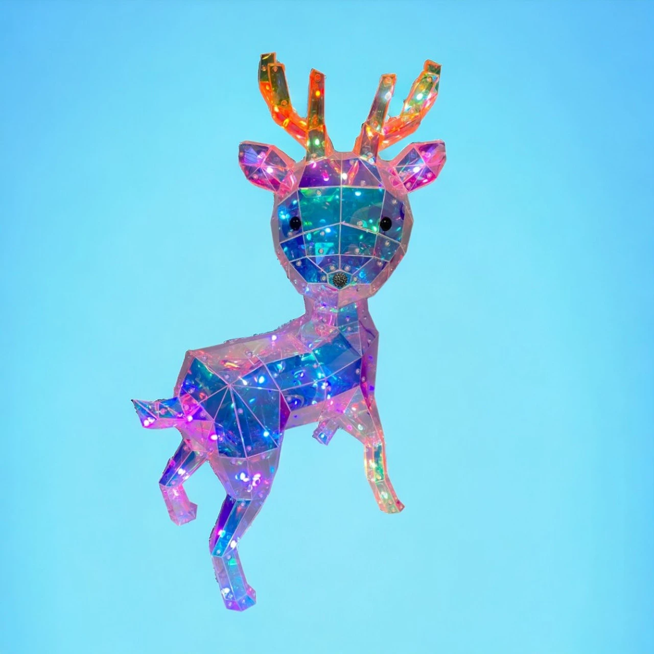 Add a magical touch to your holiday decor with the Prism Lit Small Deer! This lightweight, illuminated deer stands 23.6 inches tall and features programmable red, green, blue, and white lights.