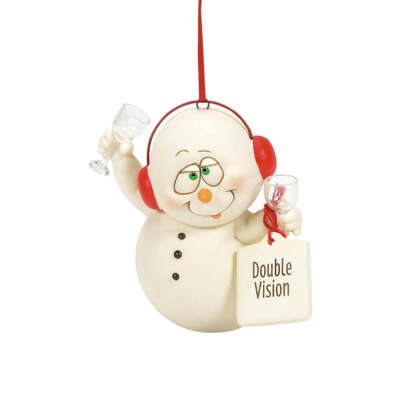 Celebrate the holidays with a touch of humor and a lot of cheer with the Snowpinions Double Vision Snowman Ornament! This festive snowman holds a glass in each hand, ready to toast to the season. Hand-crafted from creamy bisque porcelain, it features delightful hand-painted details and is part of the Snowpinions Spirited ornament collection. Perfect for gifting or adding a whimsical touch to your own tree!