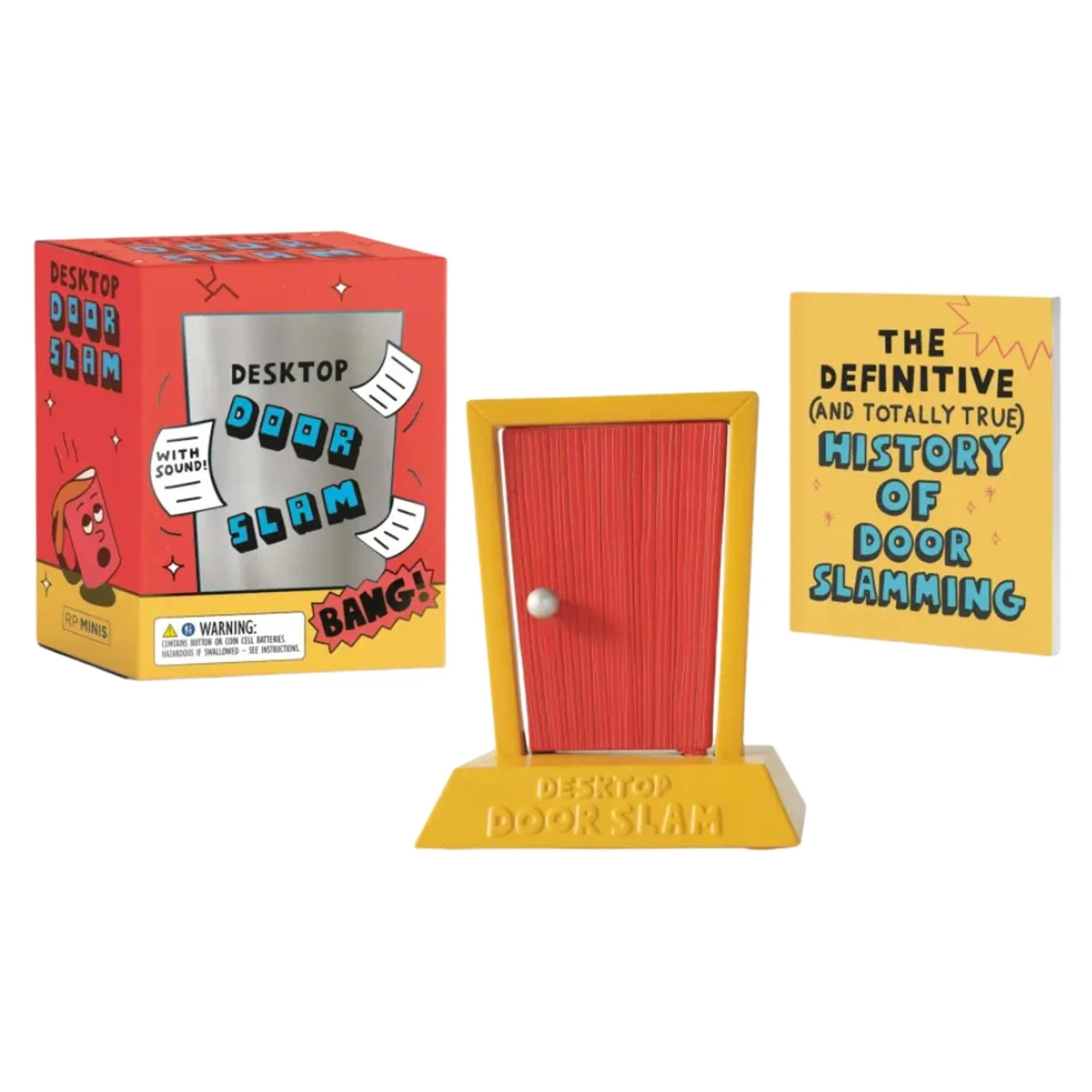 Need to let off steam without leaving your desk? Meet the Desktop Door Slam! This spring-loaded 3″ mini door lets you dramatically slam it shut with the push of a finger—and plays a satisfying slamming sound to match.