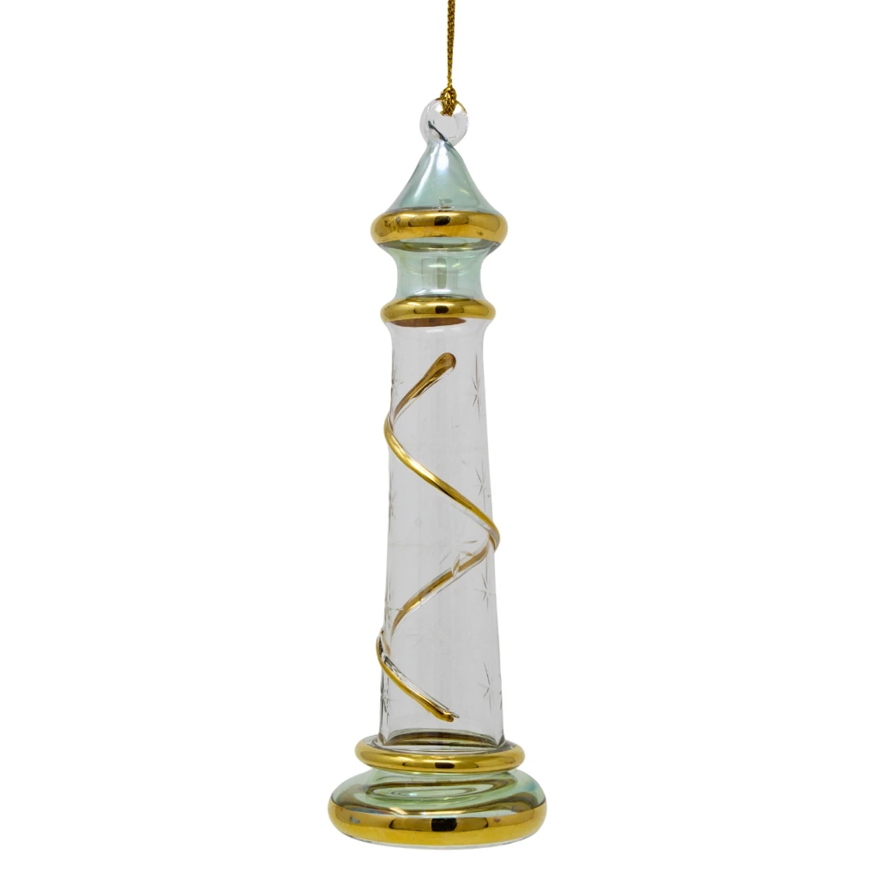Navigate the seas of elegance with the Egyptian Museum’s hand-blown Green Lighthouse Ornament. Masterfully crafted in Egypt, this piece stands as a testament to over two decades of unparalleled glass artistry.