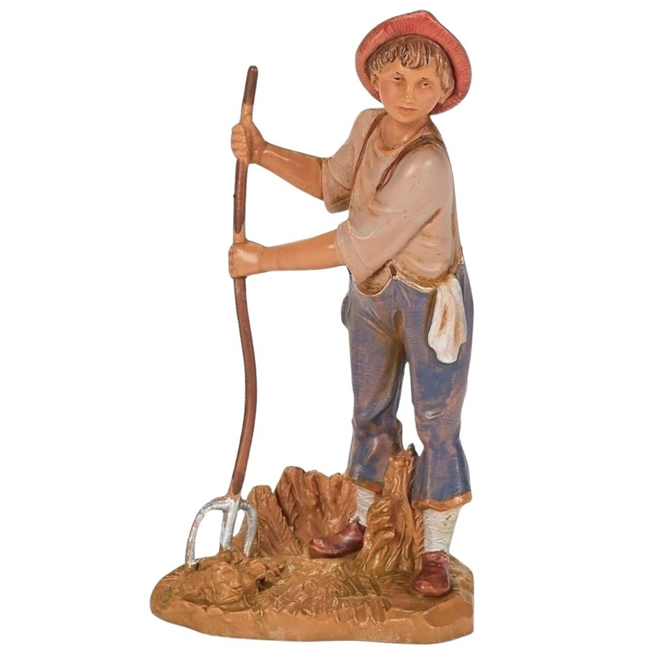 Meet Jamie, the hardworking Fontanini Boy Farmer. Dressed in classic farm attire, with a red hat and work-worn clothes, Jamie is ready to tend the land. This beautifully hand-painted figurine captures the essence of simple, rural life, making it a charming addition to your nativity or village scene. Crafted with remarkable detail and timeless artistry, Jamie adds a touch of authenticity and warmth to any Fontanini collection.