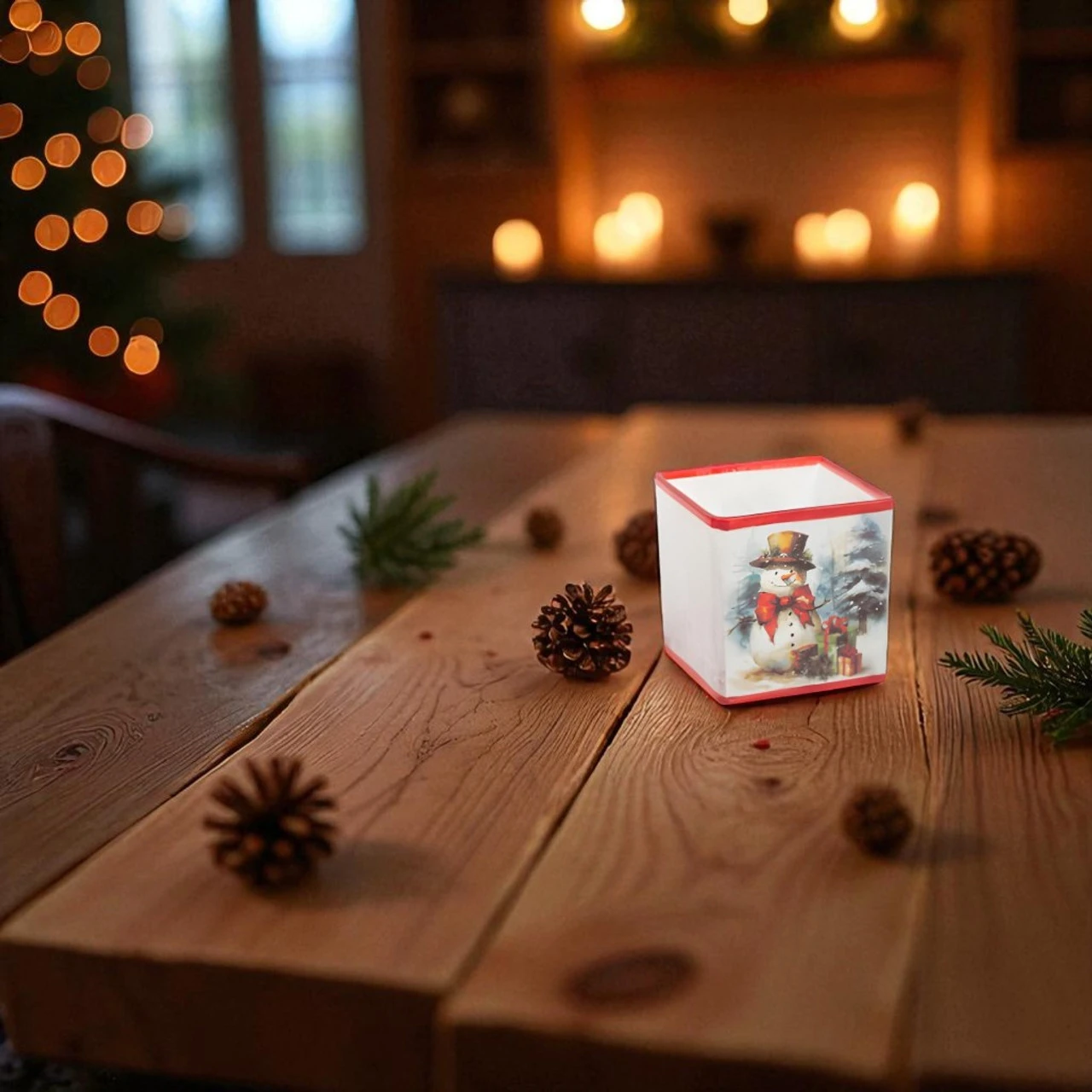 Add festive warmth to your home with this 3″ Frosted Snowman Glass Candle Holder. Featuring a charming snowman in a gold hat and red scarf, surrounded by snowy trees and holiday gifts, this piece brings classic Christmas cheer to any space.