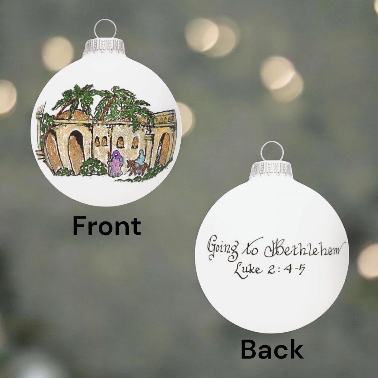 Commemorate the journey to Bethlehem with this Heart Gifts Bethlehem Ornament. Part of the Christmas Story Collection, it features a beautifully hand-painted scene with “Going to Bethlehem” and a Luke 2:4-5 verse on the back. Each ornament is crafted with care in North Carolina using quality materials, including glass, glitter, and Swarovski crystals, making it a lasting keepsake.