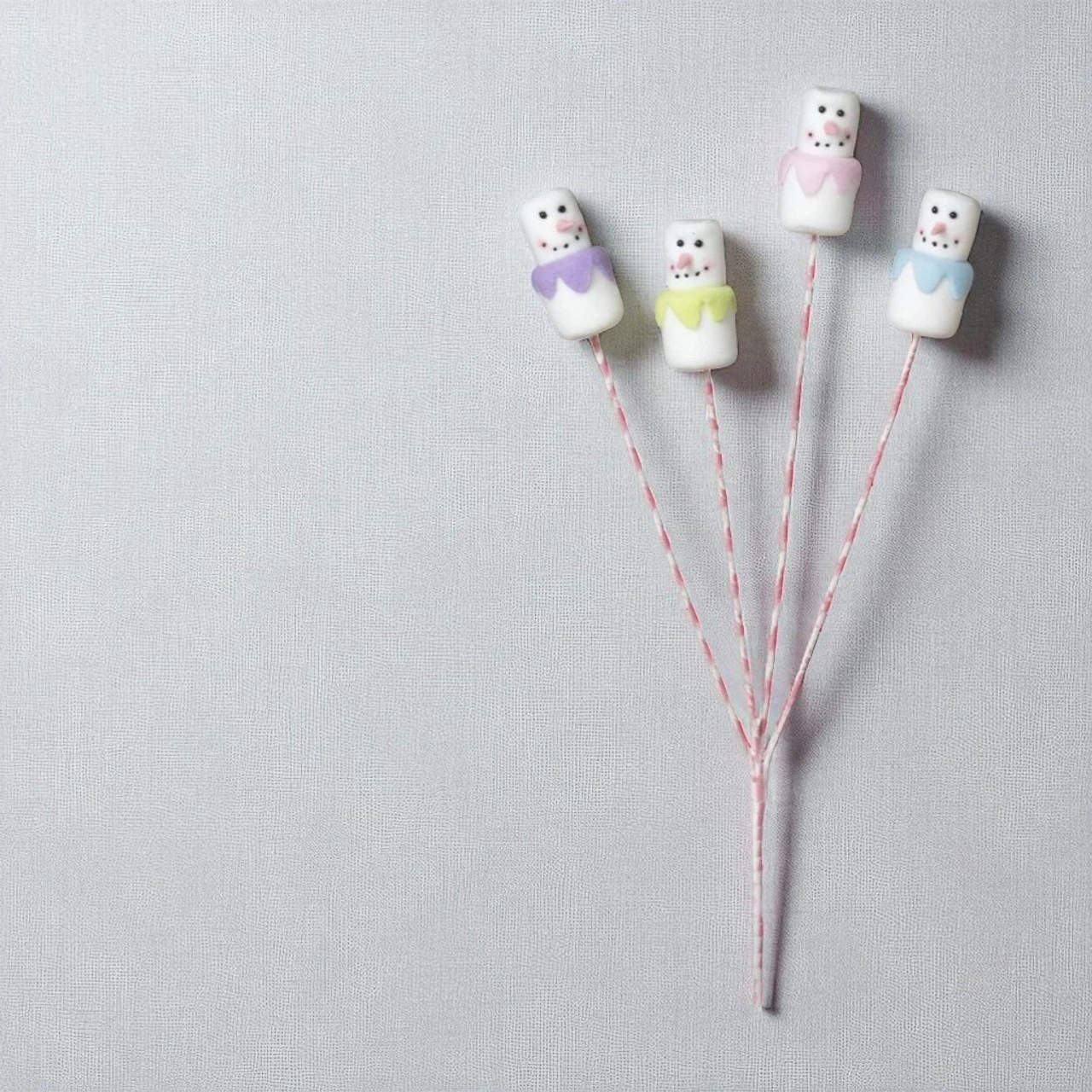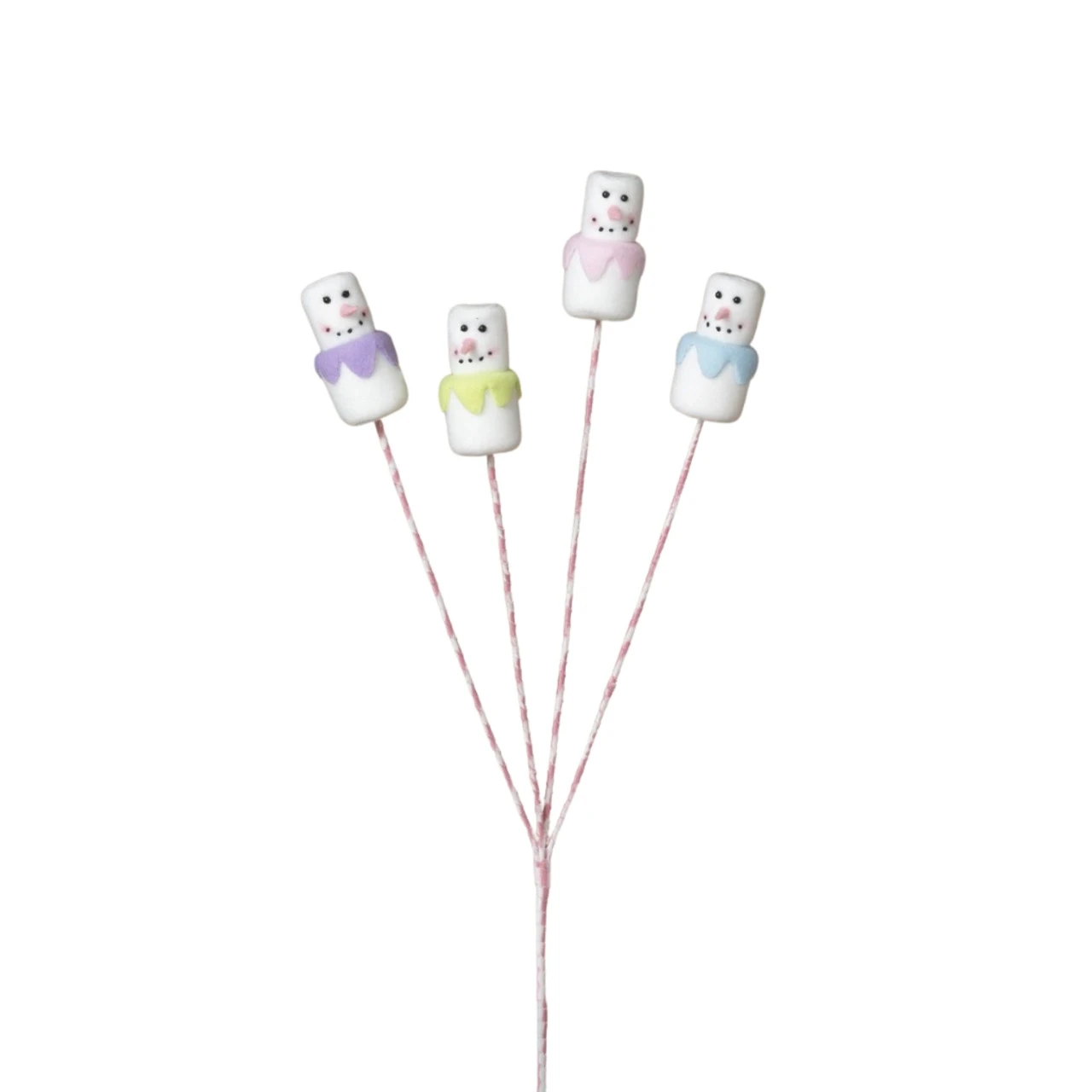 Add a playful touch to your holiday décor with this Plush Holiday Marshmallow Snowman Pick. Standing 22 inches tall, it features adorable snowmen made to look like marshmallows, each with colorful scarves in pastel shades.