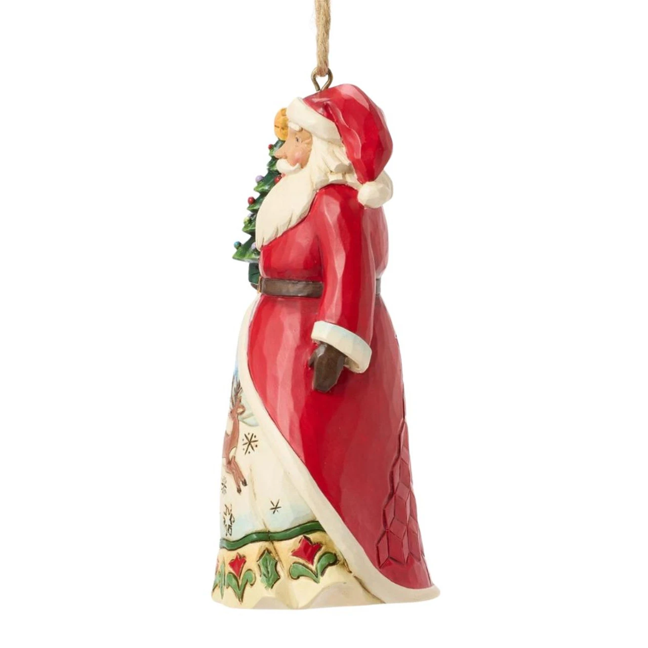 Celebrate a nostalgic Christmas with the Jim Shore Heartwood Creek Santa Vintage Christmas Ornament. Santa is beautifully detailed with a festive Christmas tree in hand and a charming reindeer scene displayed on his robe.