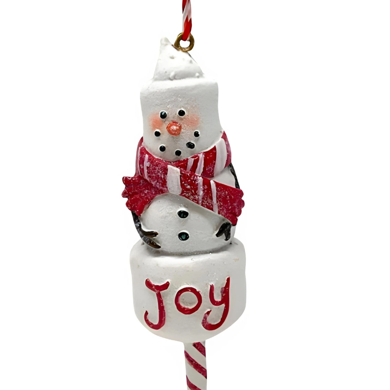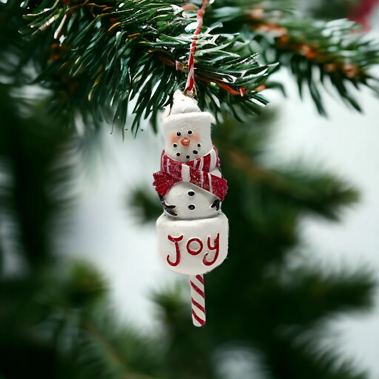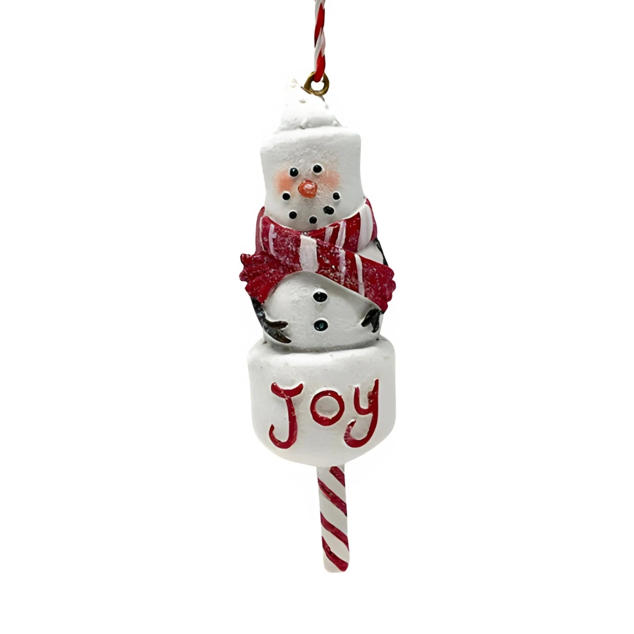 Sprinkle joy on your Christmas tree with this 3.3-inch Joy Marshmallow Snowman Ornament. Made of resin, this cheerful snowman sports a scarf emblazoned with ‘Joy’, bringing a smile to the season.