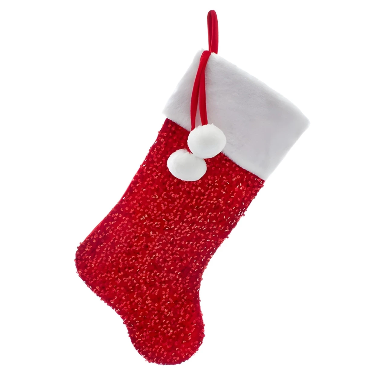 Add a sparkle to your holiday decor with our 20″ Red Sequined Christmas Stocking by Kurt Adler. This eye-catching stocking, adorned with shimmering sequins, is perfect for a festive mantle display.