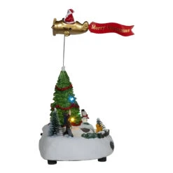 This charming tabletop piece by Kurt Adler captures the essence of Christmas with Santa in his sleigh, accompanied by a joyful array of multicolored LED lights. Measuring 9.6 inches tall and crafted with a blend of resin, paint, and mica, this battery-operated decoration brings a heartwarming and colorful illumination to any space.
