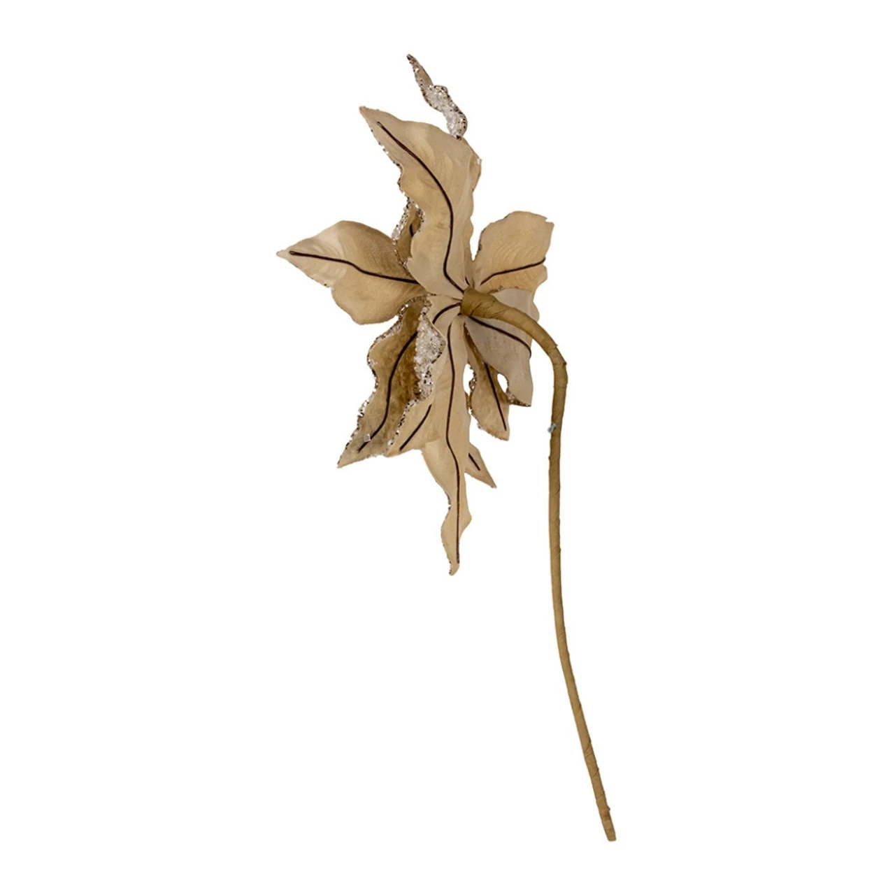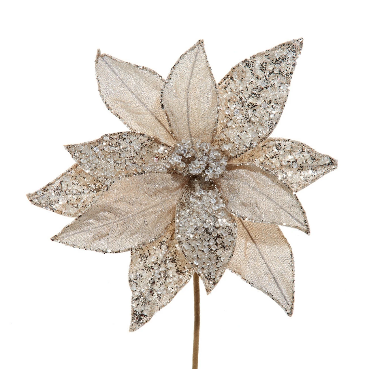 Crafted with polyester, iron, and paper mache, its bendable stem allows for easy styling. The neutral champagne tone pairs beautifully with classic or modern themes, making it a versatile piece for enhancing your seasonal celebrations with glamor and grace.
