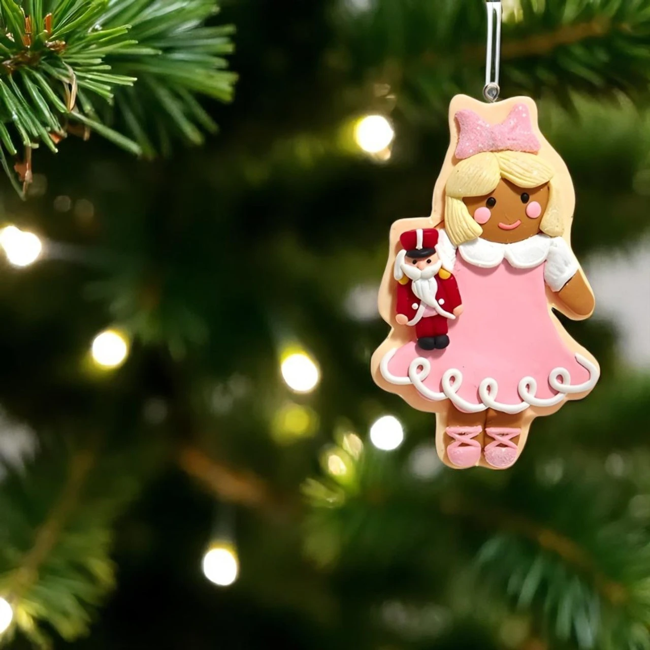 Perfect for Nutcracker fans or cookie collectors, this ornament brings nostalgic charm and playful elegance to your Christmas tree, garland, or festive holiday display.