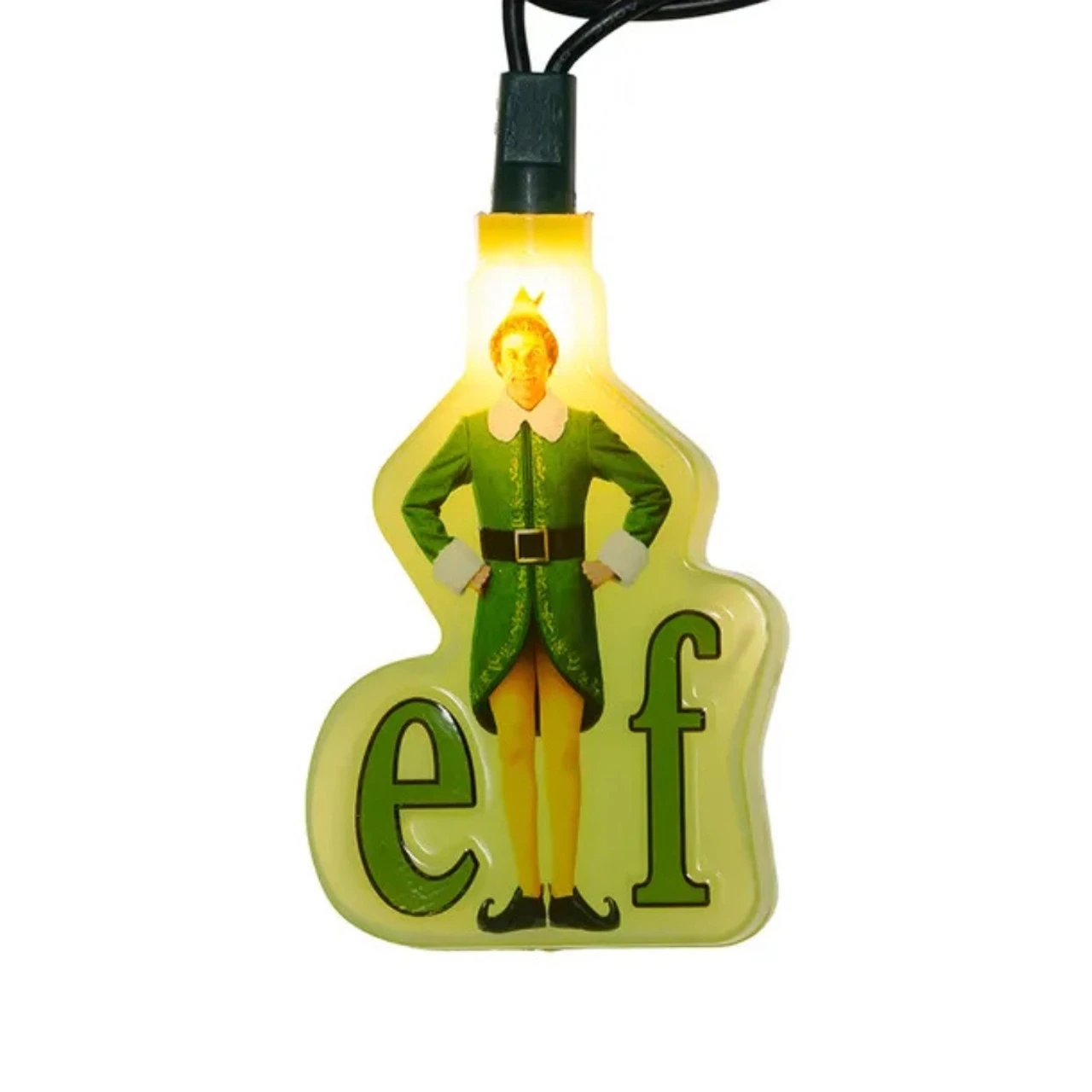 Bring holiday cheer with this 9-foot Elf The Movie light set from Kurt Adler! Featuring 10 UL-listed clear incandescent lights, each cover showcases Buddy the Elf as the “L” in the word “elf.” With green wiring, 30″ lead, 12″ spacing, and spare bulbs included, this light set adds festive fun to any indoor or outdoor space.