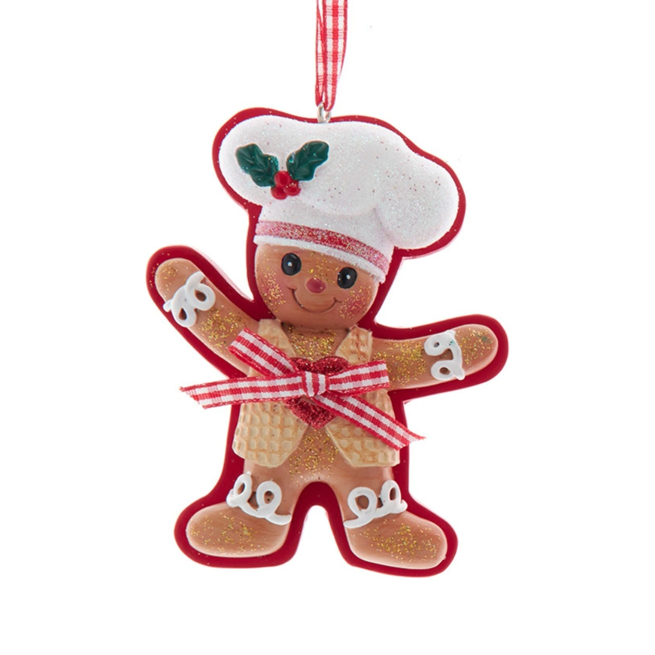 Add a sprinkle of cheer to your holiday with Kurt Adler’s Gingerbread Boy Chef Ornament! This 3.5-inch claydough cutie wears a glittery chef hat with holly, a checkered apron, and a red-striped bow with heart detail.