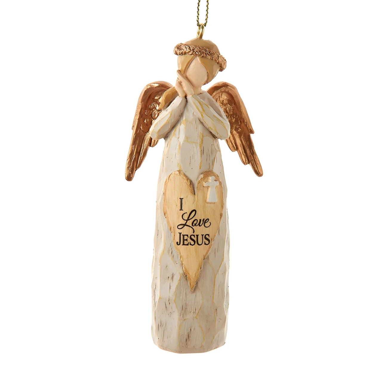 Embrace your faith with the I Love Jesus Angel Ornament, standing at 4 inches and gracing your space with a message of love. Crafted with care from resin, this Kurt Adler A2295 ornament carries a peaceful presence.