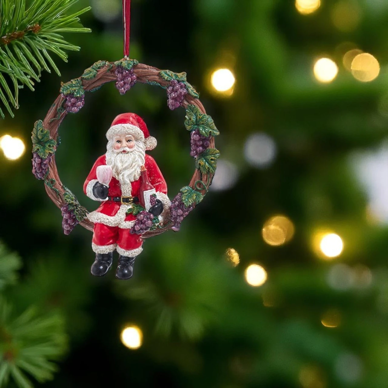 Whether you’re a wine lover or just love Santa with personality, this ornament brings cozy vineyard charm to your holiday décor.