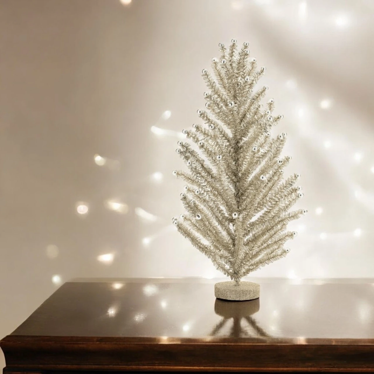 Ideal for tabletops, mantels, or as a centerpiece, this tree adds a sophisticated and festive flair to any space. Its slender profile makes it easy to style and perfect for adding a touch of sparkle to your holiday setup.