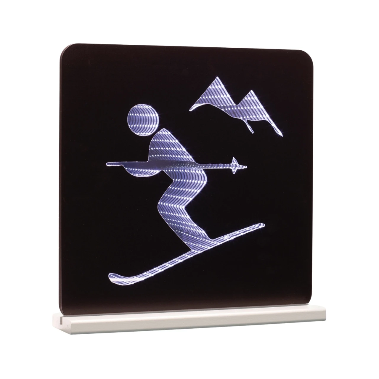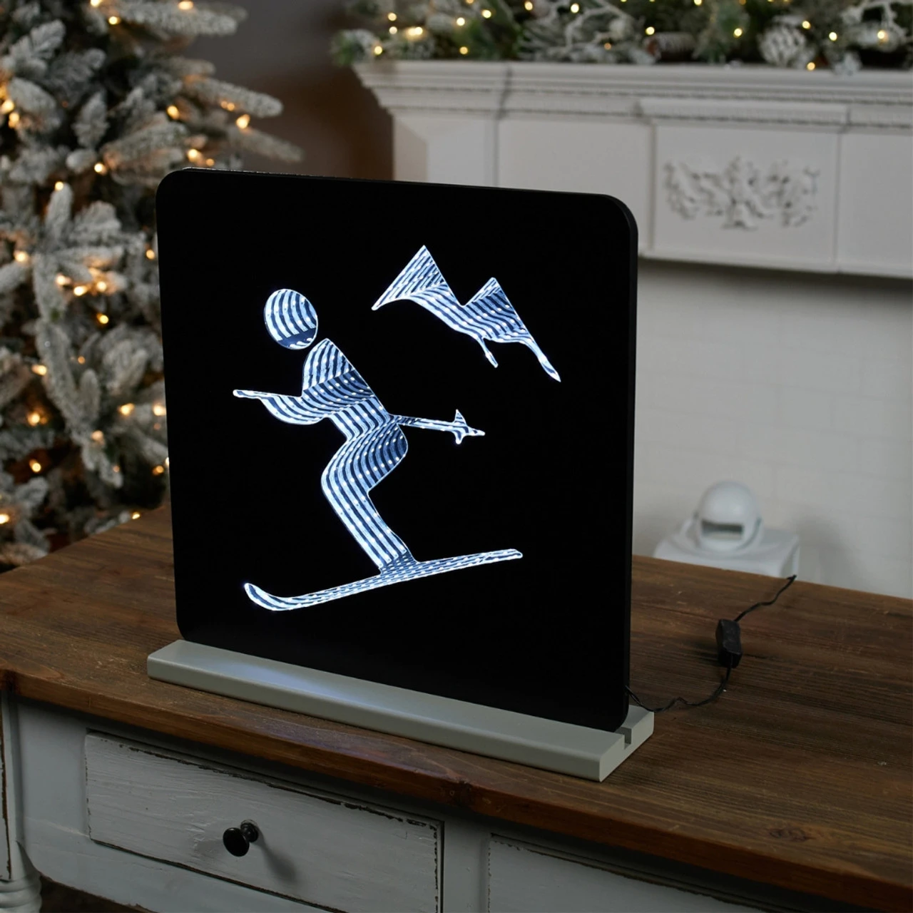 Bring the excitement of the slopes to your home with this LED Skier Plaque. Measuring 15.5 inches square, this sleek acrylic plaque lights up with a mesmerizing skier design, making it perfect for any winter sports enthusiast.