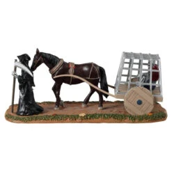 Embark on a chilling journey with the Dungeon Cart, a striking addition to your Spooky Town collection. Crafted from high-quality resin, this non-electrical table accent measures approximately 2.76 x 7.48 x 2.83 inches. Released in 2024, it depicts a haunting scene where a grim reaper escorts a skeleton to the dungeon, led by a sturdy horse. This piece perfectly captures a day of terror in Spooky Town, making it a must-have for collectors and Halloween enthusiasts.