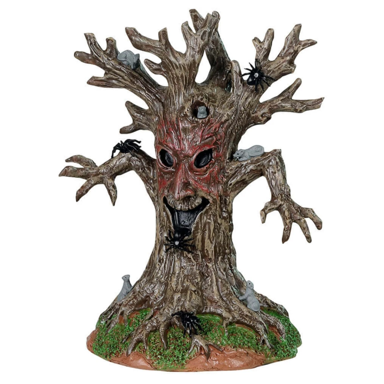 Meet the malevolent marvel, the Evil Spooky Tree, a chilling Halloween horror in Spooky Town’s heart. In 2024, this plastic table accent, sized 6.10 x 3.86 x 3.74 inches, stands sentinel with gnarled branches. Venture near if you dare, but protection against its dark enchantments is your only hope for escape from its petrifying presence!