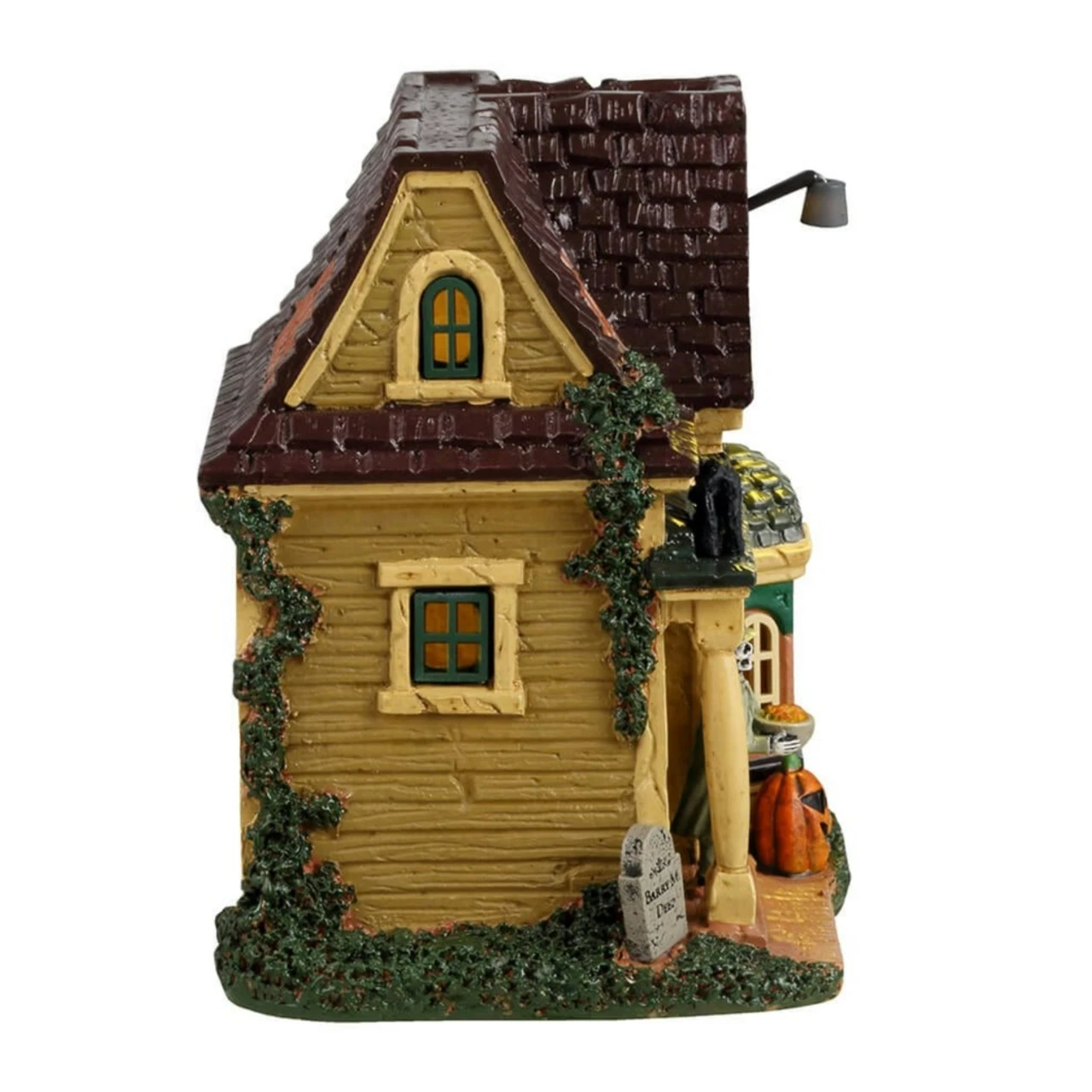 Brave the Gentleman Ghouls Treats, a 2024 Spooky Town highlight. Encounter a skeleton guide, eerie headstones, and a black cat in this resin table accent (4.88 x 4.41 x 3.74 inches). Includes an on/off switch, A/C adaptable (adaptor not included).