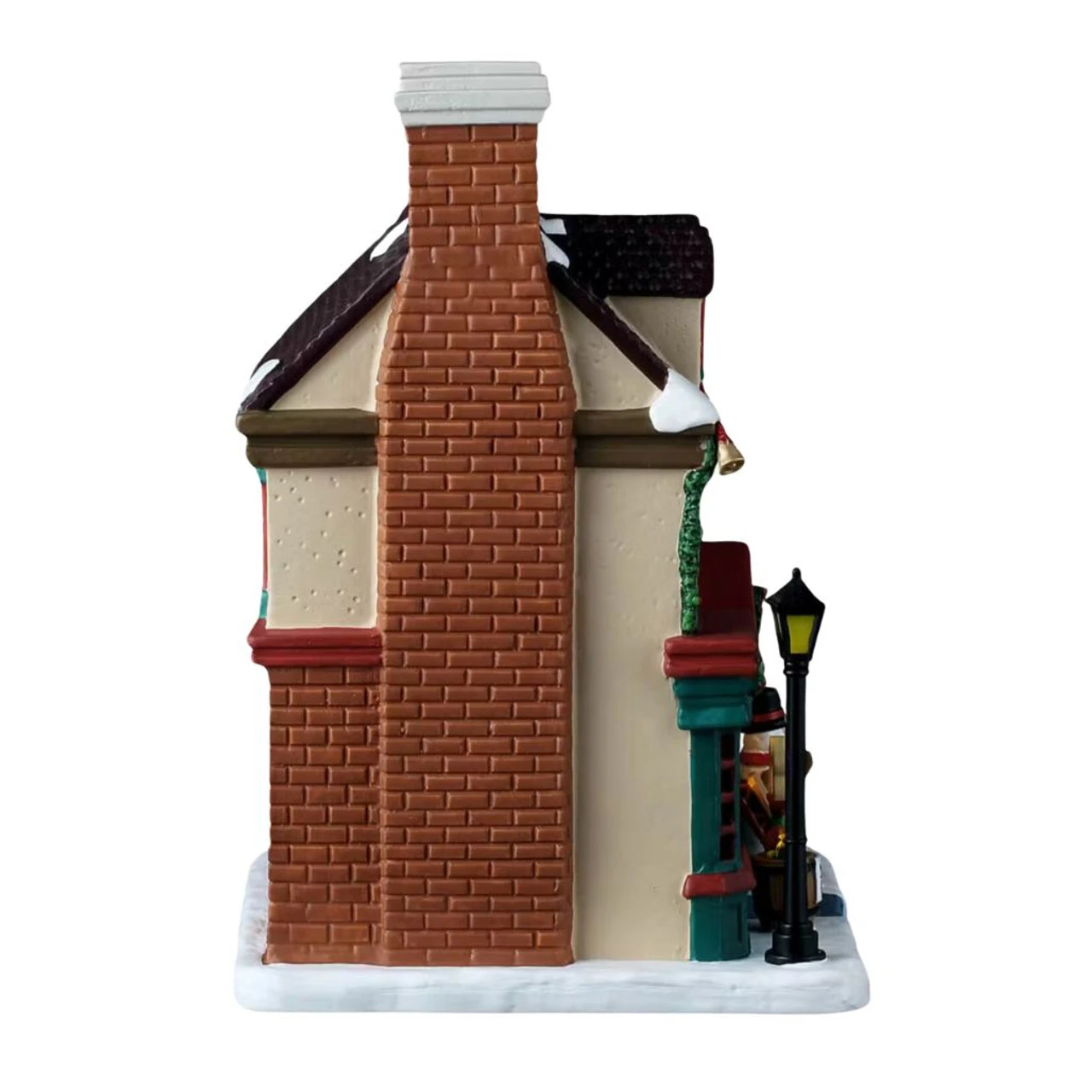 Step back in time with Lemax’s The Five Pence Shoppe. The charming façade welcomes you with twinkling lights and endearing garlands while a bargain bin offers holiday treasures for all ages, perfect for last-minute stockings. A nostalgic storefront filled with holiday treasures invites passersby to explore.
