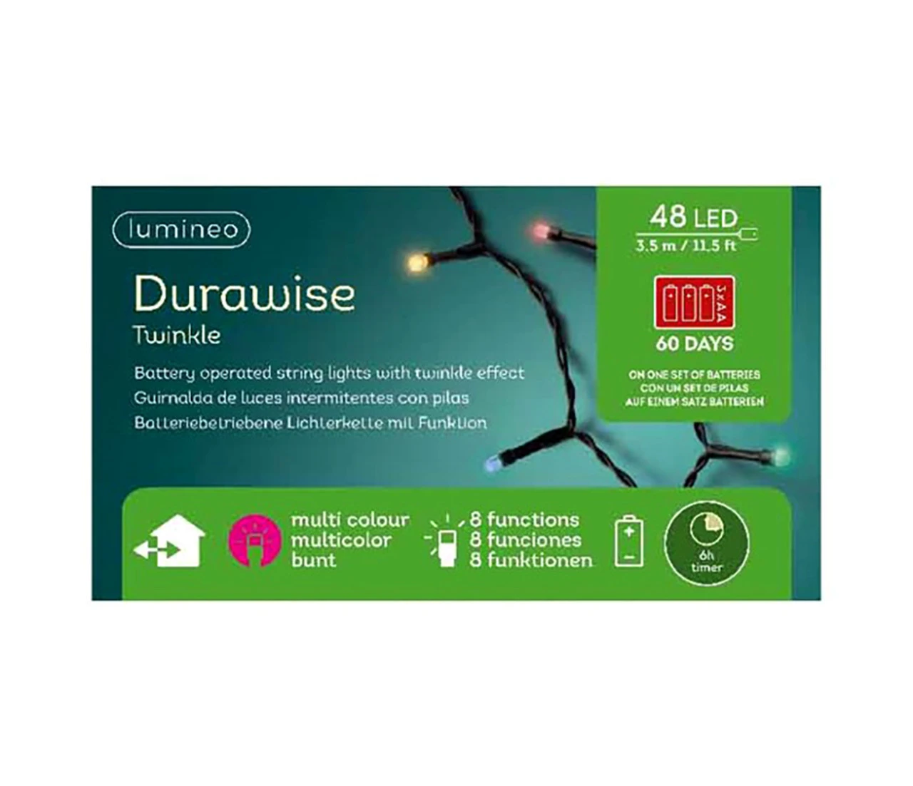 Be the first to review “Lumineo 48 LED Multi-Colored Twinkle Lights On Black Wire” Cancel reply