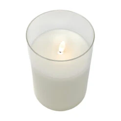 Elevate your ambiance with our LED Pillar Candle, encased in a sleek glass canister. Standing at 5.9 inches, it exudes a warm white glow, mimicking a real flame without the risk or mess.