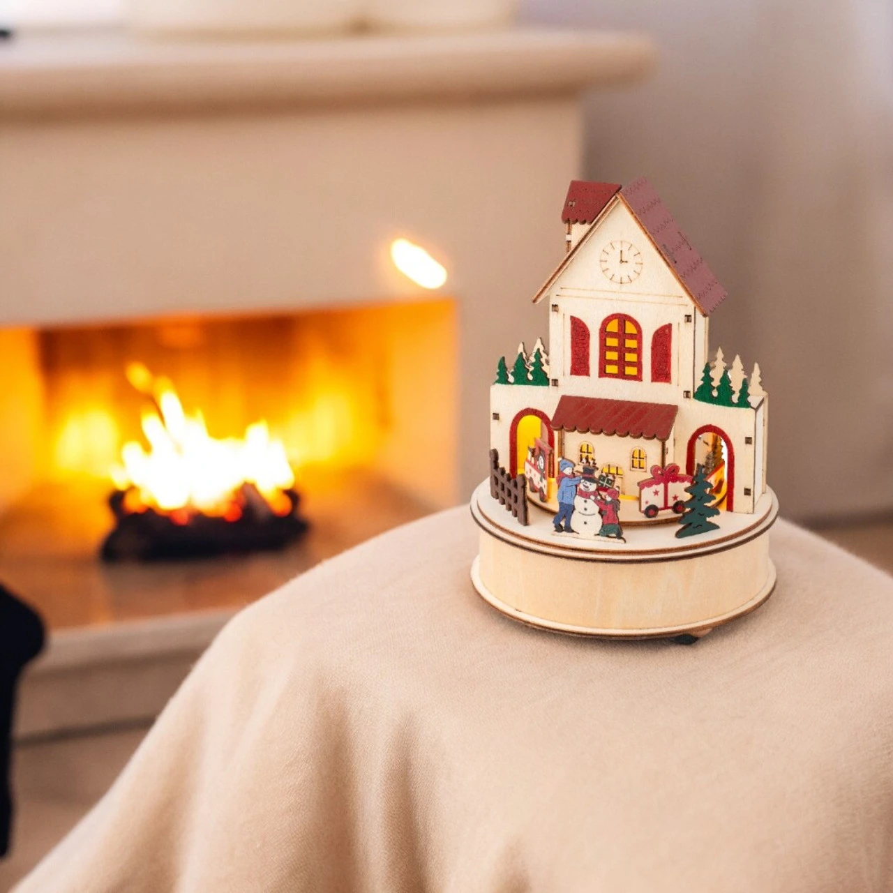 Battery-operated, it plays cheerful music to enhance the holiday atmosphere. Crafted from high-quality wood, this decoration adds a touch of whimsy and joy to your Christmas decor. Perfect for creating a magical holiday display that will delight all ages.