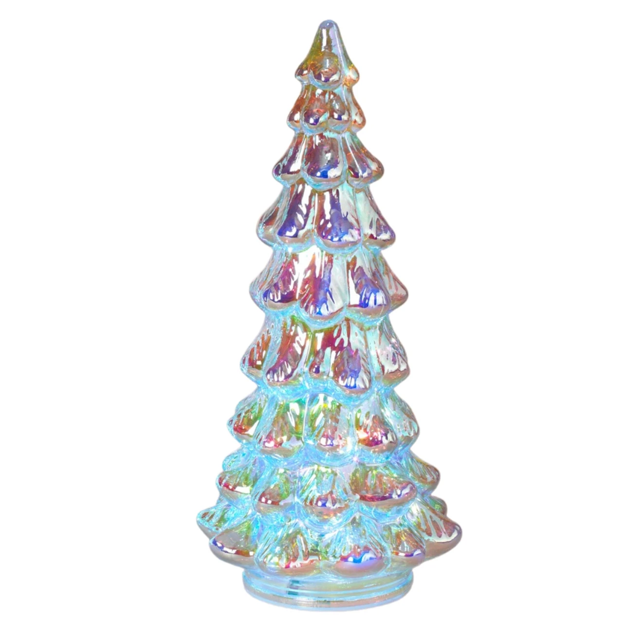 Introducing our Medium Iridescent Glass Tree, a true symbol of elegance and enchantment. This exquisite piece showcases a stunning iridescent tree design that effortlessly captivates the eye. Crafted with precision and care, the glass tree reflects and shimmers with mesmerizing colors, creating a spellbinding display. Its compact size makes it versatile, perfect for adding a touch of sophistication to any space, be it a tabletop, shelf, or mantel. With its undeniable charm and captivating presence, our Small Iridescent Glass Tree is a must-have for those seeking to infuse their surroundings with a sense of beauty and wonder. Elevate your decor and embrace the magic with this stunning iridescent tree.