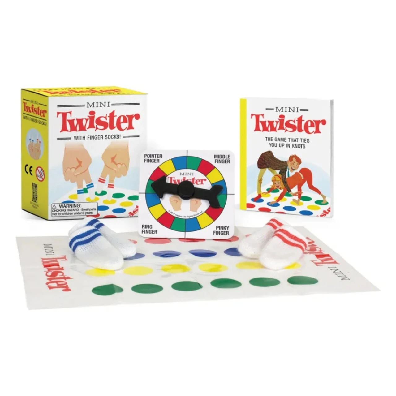 Get twisted in the tiniest way possible with Mini Twister! This hilarious finger-sized version of the classic game includes a mini mat, spinner, and tiny tube socks for your fingers. Spin the wheel, stretch your digits, and laugh your way into knots.