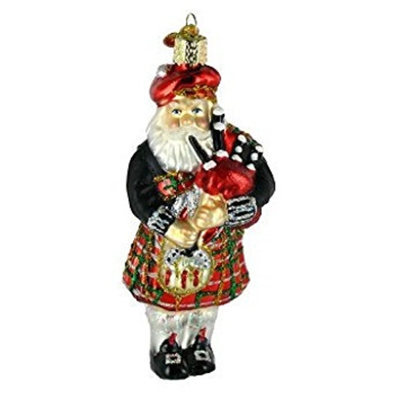 The legend of Santa Claus is derived from the European figure of St. Nicholas. Throughout the world he became the folk hero all children dream about on Christmas Eve. This Santa proudly wears a traditional tartan kilt and other clothing of the Scottish highland, as well as playing the popular musical instrument, the bagpipes.