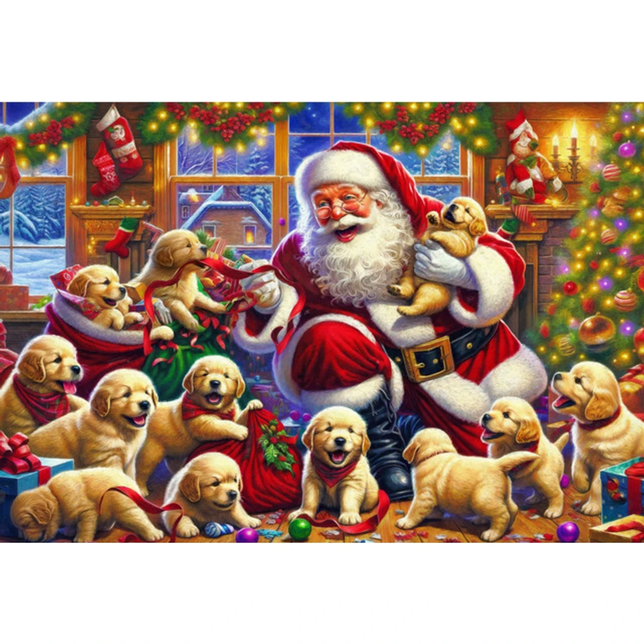 Get ready for festive fun with the Paw-Some Presents Jigsaw Puzzle by artist Rafael Trujillo. This 100-piece puzzle features Santa surrounded by playful puppies in a cheerful holiday scene.