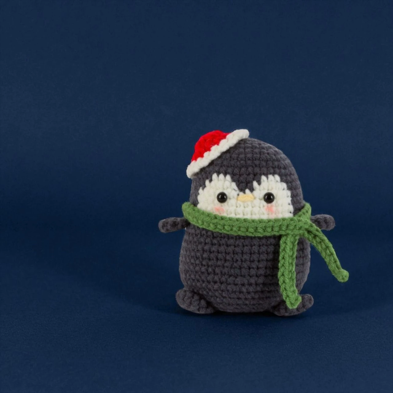 Create your own adorable holiday penguin with this Penguin Holiday Crochet DIY Kit! Perfect for beginners and craft lovers, this kit includes yarn, threaded eyes, stuffing, crochet hook, marking pins, plastic needle, and easy-to-follow instructions. The finished penguin features a cute Santa hat and green scarf for festive charm.