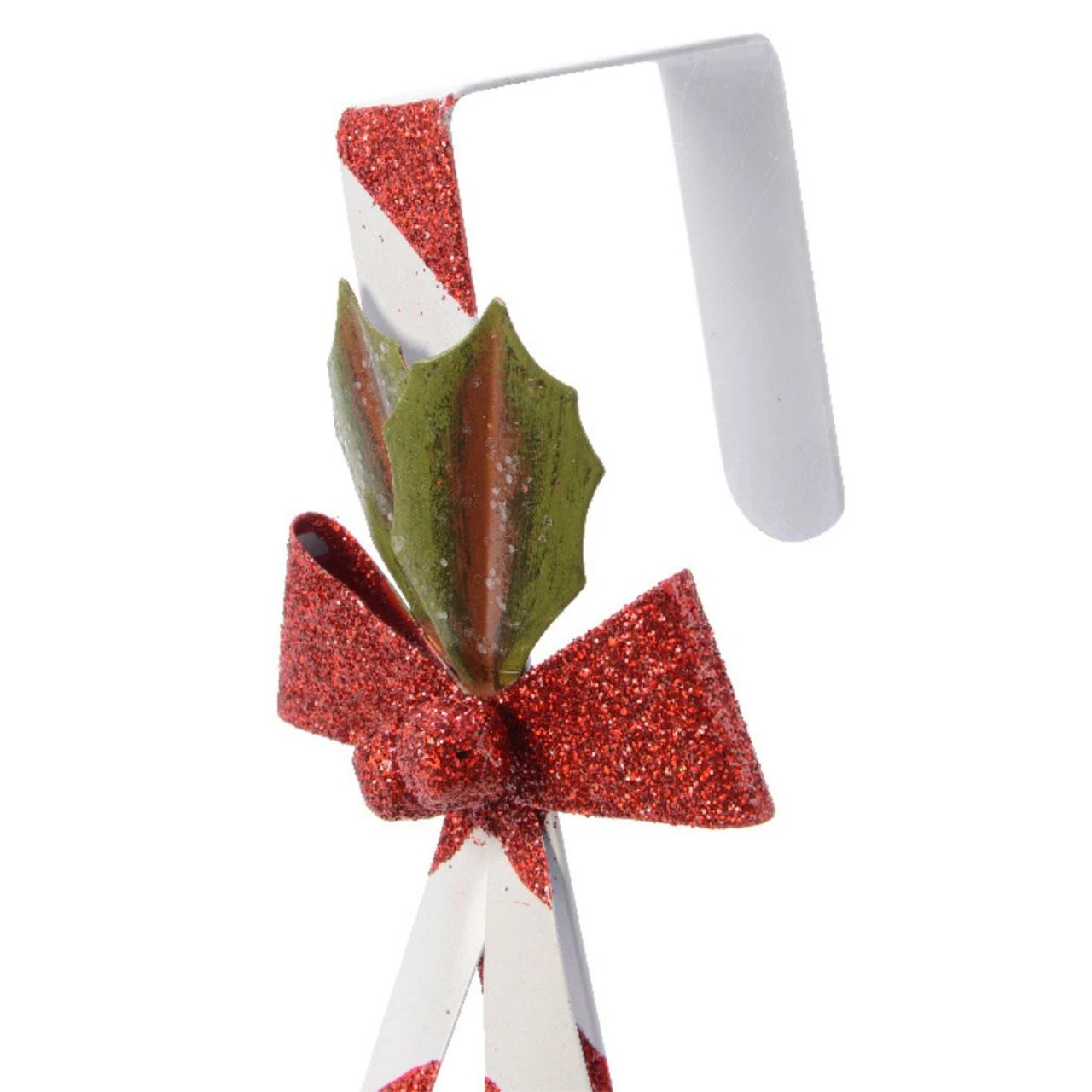 Hang a Christmas wreath on your door with this festive red and white door hanger.