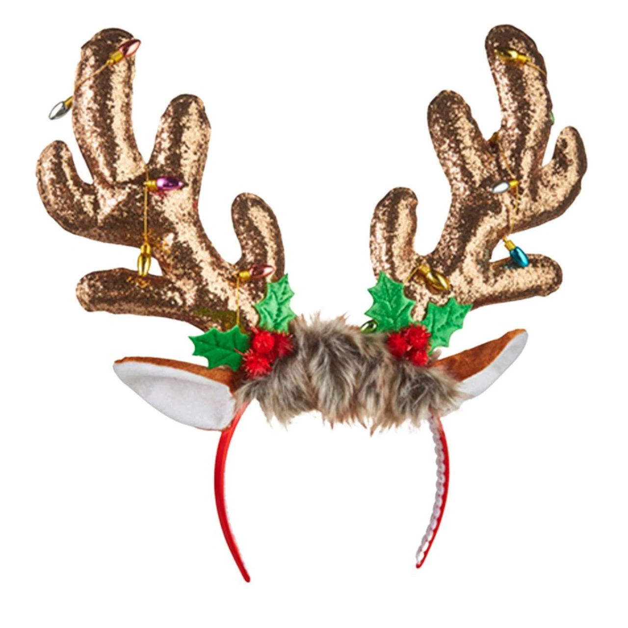 Add some holiday cheer with this Reindeer Antler Headband! Featuring sparkling gold sequin antlers, soft faux fur trim, and adorable holly accents, this fun headband is perfect for Christmas parties, holiday photos, or festive outfits.