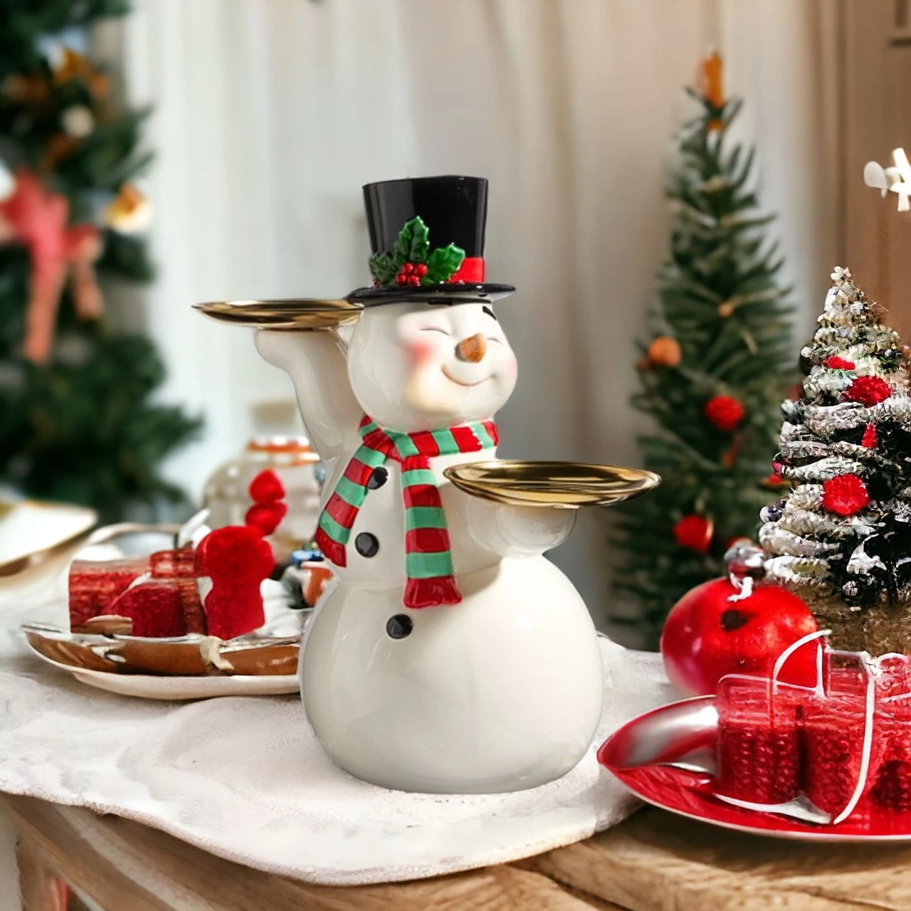 Serve your holiday treats with whimsical charm using our 16″ Retro Snowman Cake Plate. Featuring a delightful snowman design, this plate adds a festive touch to any dessert table. Made of durable resin, it’s perfect for showcasing cakes, cookies, and other sweet treats.